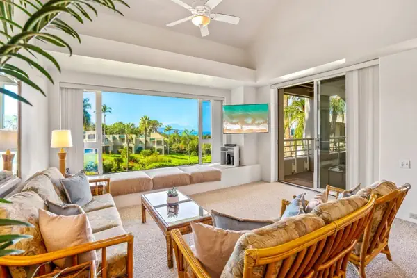 Top floor condo, #1302 overlooks the lush, landscaped grounds of Palms at Wailea out to a beautiful view of the Pacific Ocean. Watch whales breaching in Winter months and enjoy glorious sunsets year-round.