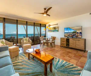 As you enter, you will be taken aback by the amazing views from your private lanai. With plenty of seating to dine or lounge, spend your days relaxing while listening to the sounds of the waves lapping on the beach. The floor-to-ceiling sliding glass doors allow for seamless indoor/outdoor living.