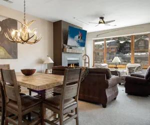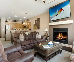 This deluxe two-story home has designer furnishings throughout, private washer/dryer, and an attached garage so you do not have to brave the cold until you are ready. There is also a fantastic common area hot tub just steps away!