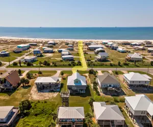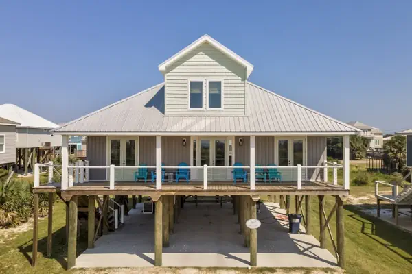 The house was completed in 2023 and is tastefully finished with large crown molding, beautiful flooring, modern furnishings, and gorgeous lighting. The gulf view bedrooms both walk onto the gulf deck, where you can enjoy the ocean breeze and a great view of the Gulf of Mexico. The tall ceilings and great accents create a pleasing ambiance to enjoy your Dauphin Island Beach Vacation.
