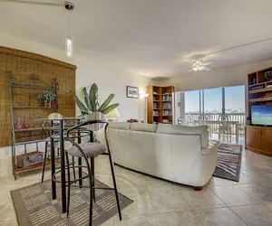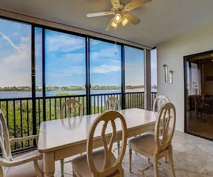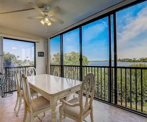 When dinner is over, the cozy white leather couch and oversized armchair and ottoman are there to make you feel relaxed and ready to watch your favorite show on the large HDTV, sit down with a good book, or just cuddle up for a quick nap. This condo also showcases an enclosed and screened sunroom with large sliding glass doors. Open the sliders, pour yourself a late afternoon cocktail or a morning cup of coffee and enjoy the bay breeze and marine wildlife.