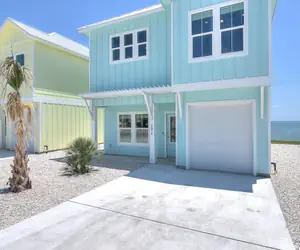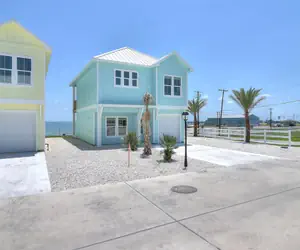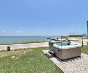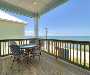 Upon entering the front door, you will find the den, which includes a sleeper sofa and is a great place for kids to hang out. Two bedrooms and a full bath are located towards the waterside of the home. One bedroom features a King size bed, while the other has a Queen bed. Both bedrooms offer a stunning view of Aransas Bay.