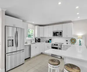 Vacation like an Islander in our lovely three-bedroom pool home located two blocks from the sugar sand beaches of Anna Maria. A quick walk leads to the relaxing waves and turquoise waters of the Gulf of Mexico. Our single-story ranch style home has everything you need for the perfect vacation; a full kitchen, dining room with table for six, and comfortable living room to gather together. The master bedroom features a King bed and an Ensuite bathroom. A guest room with two twin beds includes an Ensuite bathroom with direct access to the pool. The final guest room has a queen-sized bed with French doors to the pool deck. Each bedroom has a TV and includes crisp linens and plush towels from our professional linen company. HIGHLIGHTS• 2,277 sq ft. • Outdoor shower• Dog friendly• Private pool (25x10 ft)• 0.2 miles from beach accessBEDROOMSSleeps 6Primary Bedroom: Ensuite KingSecond Bedroom: Ensuite Twin Beds (2)Third Bedroom: QueenLiving Room: Queen Sleeper SofaBATHROOMPrimary Bathroom: Walk-in ShowerSecond Bathroom: Walk-in ShowerEXTERIORThe sparkling heated pool under the screened lanai is the highlight of the fenced backyard. Surrounded by pool loungers, and outdoor shower, patio dining set and gas grill, outdoor relaxation abounds. Our home is easy walking distance to many shops and restaurants, and the free Island trolley, which travels the entire length of the Island. Hop on and off at your leisure and explore shopping, dining and the beaches. The perfect location for your next beach vacation! There are 4 parking spaces for this home.Optional pool heat up to 86 F is available from November to April at $150/week Pools are serviced weekly and debris, due to tropical climate, might occur in between service days. Pool alarms are mandated per city licensing ordinance. Minimum stay: 7 nights. Maximum of 6 guests can stay at this property.Beached Inn is a pet friendly property for dogs up to 50 lbs. The non-refundable pet fee is $150.00 per pet per stay with a maximum of 2. Short stays are not pro-rated. The pet fee does not cover any damage caused by the pet.Please keep in mind that you are vacationing in a residential area. Please be a good neighbor by keeping the noise to a respectful level during the day and night. Excessive and unreasonable noise can deprive neighbors of the peaceful enjoyment of their private property. VRC20-000101