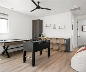 Sunstone is located only 1 block from the community pool and 2.5-acre lagoon. Not only is its location ideal, but this property is also fully stocked with its own private amenities! Relax outside in the private hot tub or seated around the fireplace on the outdoor top deck, or enjoy a movie inside on one of the various smart TV's and play some games at the foosball and air hockey table. And, if you're planning to be out at the lagoon all day, make sure to take the included paddle boards to cruise around on! Whatever you plan on doing for your vacation time, you will definitely enjoy it while staying at Sunstone Retreat!
