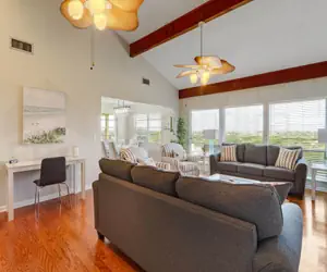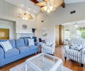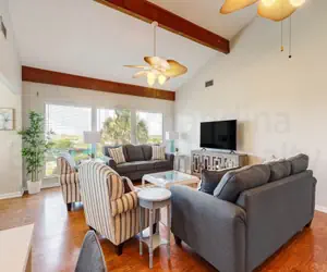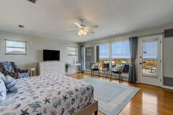 This spacious house features three beautifully appointed bedrooms, accommodating up to 10 guests comfortably. The master suite boasts a luxurious king bed, while the additional bedrooms include another king and a unique setup with two twin beds, perfect for children or extra guests. With two well-designed bathrooms, your group will have plenty of space to unwind after a day of beach activities.