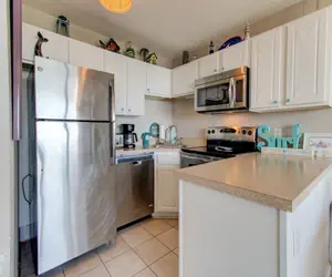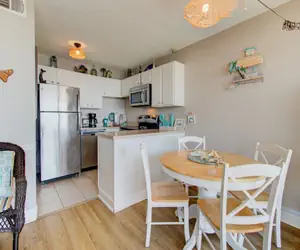 Welcome to your beach‑front escape! This bright and welcoming 1‑bedroom, 1‑bathroom condo on the 2nd floor invites up to six guests to enjoy comfort, convenience and the soothing rhythm of the waves. Step into the master bedroom and you’ll find a plush king‑size bed, offering a serene retreat after a sun‑filled day. Just off the hallway, a built‑in bunk‑bed alcove gives two additional sleeping spots in a fun, cozy space, while the living room’s sleeper sofa ensures everyone has a comfortable place to stay.