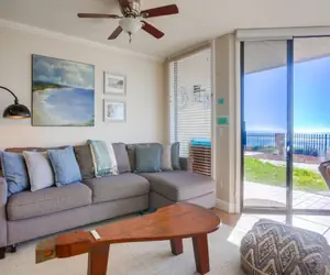 Your San Diego coastal escape begins here! Located on the border of Del Mar and Solana Beach, be prepared to immerse yourself in the unique coastal lifestyle only these two communities can provide. Just steps away from the Del Mar Shores Stairway to the sand, this ocean-view vacation rental is a beach lover's dream. After a day of sun and surf, retreat to your private oceanfront sanctuary with a cozy enclosed patio off the bedroom. Inside the unit, new carpet and beautifully updated bathroom invites you to rejuvenate. The remodeled kitchen with new cabinets and quartz counters is fully stocked and perfect for crafting meals or enjoying appetizers before heading to the Brigantine, a local favorite restaurant with crispy fish tacos, oysters, and cold beer. The ocean-view living room's expansive sliding glass doors transform your space into a seamless blend of indoor and outdoor living. Extra patio chairs allow you to soak in the sunset. Explore the gorgeous walking trails along the bluff with panoramic views of the surf and sand. Community amenities include a sparkling pool and spa. Short drive to all of San Diego’s world-famous attractions including the Del Mar Racetrack.
