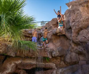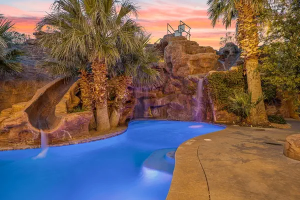 Mollie’s Landing truly offers the best private pool in Southern Utah! The expansive pool comes with two rock wall waterfalls, two pool slides, and three cliff jumping spots. Be sure to explore the hidden cave where you will find the hot tub in a picturesque grotto. For adventurous souls, a high diving board awaits!