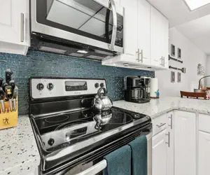 The kitchen is fully equipped with all the essentials, making meal preparation a breeze. Whether you're whipping up a quick snack or preparing a gourmet feast, you'll find everything you need. The condo's living room also features a queen sleeper sofa, a large Smart TV with streaming services, and a selection of books and games for your entertainment and relaxation.
