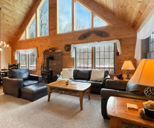 Inside, Beechwood features three levels of inviting living space. The main floor's open-concept layout includes vaulted ceilings, floor-to-ceiling windows, and a fully equipped kitchen with a breakfast bar overlooking the dining and living areas — a perfect gathering spot after a day outdoors.