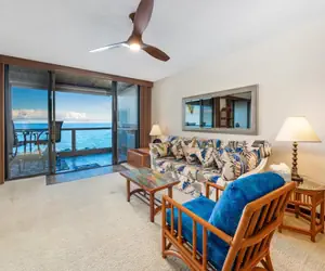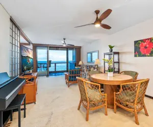 Enjoy the open layout of the living area, dining area, and kitchen. Relax and stream your favorite show in the living room or have an island-style dinner cooked at home. The kitchen is fully stocked for any at-home chef to cook. The lanai is stunning and you can't get any closer to the ocean. Take in the views and enjoy hearing the ocean rock you to sleep.