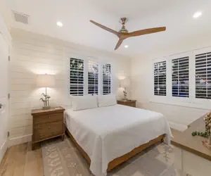 Welcome to The Shady Mermaid! A luxury ground-level vacation home just a 3-minute walk from the beach! With two bedrooms and two bathrooms, this rental sleeps up to six guests. You and your guests can sit back, relax, watch movies, and connect over effortless conversations in the living area. Top of the range, fully equipped kitchen has ample counter space, gas cook top and oven, extra-large fridge/freezer and wine cooler making meal prep a breeze. There is also a wet bar in the dining area with two cooler drawers, a large butler's kitchen with a large freezer. Delight in your delicious island-inspired homemade meals or Anna Maria Island take-out at the indoor or outdoor dining table, where you can also enjoy the Island breeze.The primary bedroom offers a calming atmosphere perfect for catching up on much-needed sleep and has a TV for late-night entertainment. The second bedroom is perfect for another couple and has plenty of closet space for vacation attire and beach necessities. The primary bedroom has a bathroom which features a soaking tub and walk-in shower. The guest bathroom has a walk-in shower. There is also a baby monitor in the property.Relax in your private backyard oasis, where you and your guests can make a splash in the pool which also functions as a spa and you relax in one of the many seating areas. There is a BBQ grill perfect for grilling locally caught seafood. Explore the beautiful beaches Anna Maria Island offers, swim in the warm turquoise waters, and feel the sugary sand cover your feet. Afterward, browse the fantastic boutiques, coffee shops in Holmes Beach or head to any local restaurants for delicious treats and fresh seafood! Hop on the free trolley and explore the island! Anna Maria Island has many guided tours. Kayak or paddleboard the bay and the calm Gulf of Mexico, where you might even encounter some wildlife!HIGHLIGHTS• 1406 sq. ft. • Private Pool/Spa (12x7 ft.)• Tiki Hut• 0.1 mile from beach access • 0.2 miles from bay accessBEDROOMS• Sleeps 6• Primary Bedroom: King Casper Mattress• Second Bedroom: King• Sleeper Sofa: QueenBATHROOM• Primary Bathroom: Spa Soaking Tub and Walk-in Shower• Second Bathroom: Walk-in ShowerEXTERIORAfter a long day at the beach, head back to The Shady Mermaid and take advantage of its beautiful outdoor scape. Take a dip in the crystal-clear private heated pool/spa. There is a gas grill and outdoor dining spot to enjoy a bite to eat in a beautiful, tropical landscape. Also, a large Tiki Hut with bar, loungers and outdoor TV where you can enjoy the Game.The pool/spa heat is $100.00 a week. Pool heaters in private homes are locked for your safety and controls must not be tampered with as they are monitored by the pool company. 100° F is the highest heat temperature setting for spa use but it might not be always reached. Please note if cold days and nights occur, water temperatures will drop and may stay cooler longer. Pool heaters will not operate and will automatically shut down if outside temperatures get too cold. While we take every precaution to ensure that pools are heated as specified, weather conditions may affect the temperature of the pool. Nothing can be done about this issue. Outdoor spas are not hot tubs and require heat at the additional cost. The temperature of a spa is typically set at the same temperature as the pool. In the event of pool equipment malfunction during your stay, Property Manager will expedite repairs as quickly as possible. It may be necessary to close swimming pools for maintenance purposes. No refund or rent adjustment will be made for circumstances beyond our control, malfunctions, or loss of use of equipment or amenities. Minimum stay: 7 nights and Maximum occupancy: 6 peopleThere are parking spaces for two cars at The Shady Mermaid. Also, a Golf Cart parking space with outlet.Please keep in mind that you are vacationing in a residential area. Please be a good neighbor by keeping the noise to a respectful level during the day and night. Excessive and unreasonable noise can deprive neighbors of the peaceful enjoyment of their private property. VRC: 23-000116