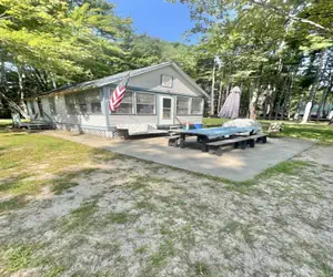 OCCUPANCY LIMIT 5- Pet friendly - SEBAGO LAKE BEACHFRONT. Rustic one bedroom cottage with a large sandy beach. Great spot for getting away from it all. Lots of outside seating to enjoy the views and watch the kids play in the sand. The bedroom has a Full bed. There is a twin bed in the front room and a futon in the living room. One dog w/permission and an additional $125 pet fee.