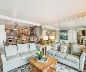 The stunning decorated kitchen and living room space offer plenty of space for the while family and to enjoy the stunning Gulf Views from all locations. The spacious kitchen has all stainless-steel full-sized appliances. The kitchen is stocked with all the cookware you’d need to cook up a feast for 4 or a quick bite before heading down to the private beach and enjoy your complimentary seasonal beach service. The living room has plenty of comfortable seating options to enjoy the large flat screen TV or the Emerald Waters.