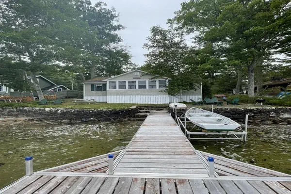 Comfortable and spacious 3 bedroom shorefront cottage with a great Maine cottage feel. Lovely, open lake views. Living room with cathedral ceiling and nice stone fireplace, eat-in kitchen, big enclosed porch overlooking the lake, and a screen porch and deck on the road side. Bath with shower. Nice frontage with steps leading down to pebbly bottom lakefront. Rock outcrop with cement platform for sunning. Dock and mooring. Walking distance to local convenience store. (see below for map location)