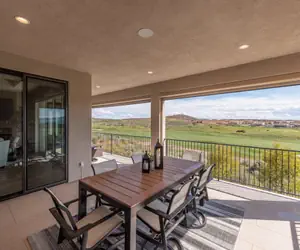 Enjoy the beautiful scenery that extend from the family room to the spacious balcony that bring together outdoor and indoor living with views of Ledges Fairway, your own private pool and the stunning red mountains of Snow Canyon. Equipped with comfortable seating, dining area and Weber Grill, this area ensures that you can indulge in outdoor dining in the perfect setting. Other outdoor accommodations include private hot tub, putting green, fire-pit, and covered patio.