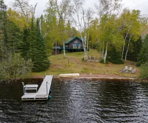 Relax on the wrap around deck overlooking the lakefront, dock, fire ring and swimming area. There is a row boat included with the rental and the boat landing is right down the road. The lakeside dining room offers panoramic views of the outdoors. The island kitchen comes fully furnished with everything you need including drip coffeepot, microwave, oven/range, full-size refrigerator and dishwasher. Main floor bedroom has a beautiful log king bed and full bath. There is a loft bedroom with two twin beds and a half bath. The walkout lower level has two bedrooms, one bedroom with a queen size bed and 1/2 bath; one bedroom with a full-size bed, full-size futon and full bath. This charming cabin is one that you will want to come back to year after year.