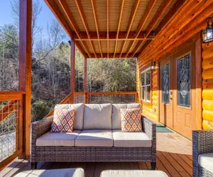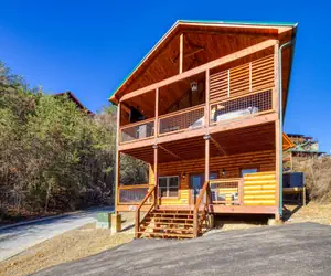 The cabin is nestled in a natural wooded setting in a log cabin community with resort swimming pool privileges. It offers panoramic mountain views and is located within minutes to all the action of the Pigeon Forge, Gatlinburg, and the Great Smoky Mountains National Park. Guests will love the feeling of being tucked away yet close to all the action!