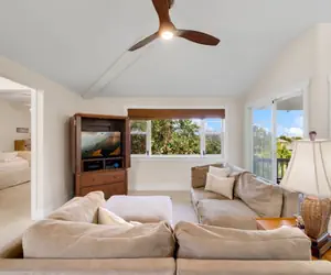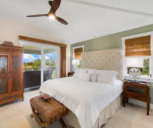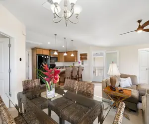 This three-bedroom, three-bathroom condo is located in the heart of the Princeville resort community on Kauai. The spacious condo is air-conditioned and has great lighting, making it a comfortable and inviting space to relax in. The modern kitchen features granite countertops, stainless appliances including a dishwasher, and upscale coffee & Nespresso makers. It is fully equipped with everything you need to prepare meals during your stay. With a spacious, covered lanai, 3 bedrooms, and 3 full bathrooms, this unit is perfect for a large family or extra guests.