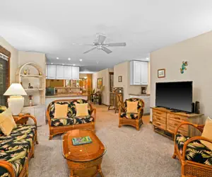 As you step into this ground floor, inviting retreat, you'll feel right at home in your ample living space that seamlessly blends modern comfort with traditional Hawaiian aesthetics. This corner unit, open-concept design allows the gentle island breeze to flow through, creating a refreshing atmosphere throughout the home.