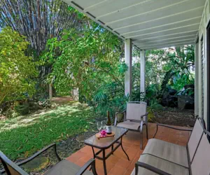 Welcome to Waikomo Stream Villas unit 100, your tropical gem in the heart of Poipu! Nestled in lush greenery and surrounded by vibrant flora, our one-bedroom condo is the perfect escape for those seeking tranquility and natural Hawaiian beauty.