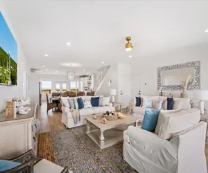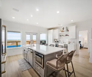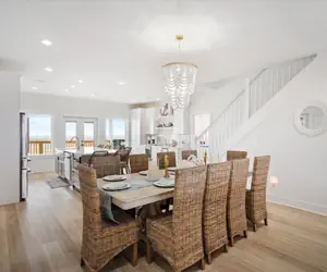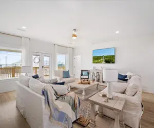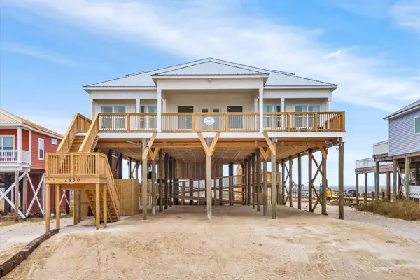 Experience the epitome of coastal luxury at this breathtaking two-story waterfront beach house at The Anchored Lighthouse on Dauphin Island. Elevated to offer panoramic views, the property features a ramp leading to a back deck, creating a seamless connection between indoor and outdoor living. The first floor boasts four bedrooms, each with a private bathroom, an open floor plan that includes a kitchen, dining room, and living room, as well as a dedicated laundry room. The second floor offers versatile sleeping arrangements with five full beds, complemented by a wet bar, a sitting area with a large TV, and two charming window nooks. The outdoor oasis, complete with a private and heated pool on the back deck, invites you to savor the coastal breeze, making this residence a haven for both relaxation and entertainment—a true gem for those seeking a refined coastal lifestyle on Dauphin Island.