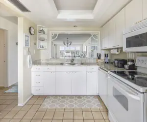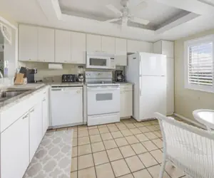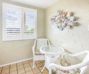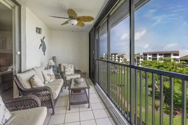 Discover the charm of this beautifully maintained Sanibel condo nestled in the Loggerhead Cay community, just steps away from the beach. This inviting two-bedroom, two-bathroom unit is ideal for a memorable family getaway. Prepare delicious meals in the fully equipped kitchen, or simply warm up leftovers from Sanibel's renowned eateries. The spacious family room boasts tropical decor and a large flat-screen TV for your entertainment needs. Unwind or dine al fresco on the screened lanai, offering serene views of lush tropical landscaping and a partial glimpse of the Gulf. Retreat to the master suite featuring a plush king-sized bed, TV, ample closet space, and scenic views. The private master bathroom boasts a shower adorned with vibrant tropical hues. The guest bedroom provides an additional twin bed and TV, while the pristine guest bathroom features a walk-in shower with a convenient bench. This airy and well-appointed condo ensures a delightful vacation experience.