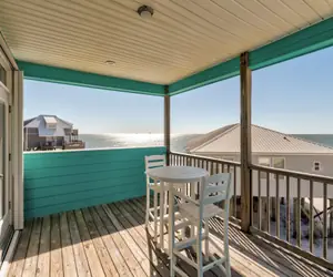 The wraparound deck offers multiple places to relax and enjoy the island breeze. With both covered and open areas, guests can choose between shaded seating or sunny spots perfect for soaking in the coastal views. Whether enjoying breakfast outdoors, afternoon drinks, or a peaceful evening under the stars, the outdoor space extends the living area and embraces the laid back island lifestyle.