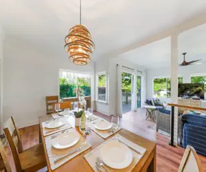 Comfortable Bedrooms: Retreat to one of the two thoughtfully designed, air conditioned bedrooms, each boasting ample storage and a touch of Hawaiian charm. Primary bedroom features a brand new, comfy king bed and private en suite bathroom with double sinks. Second bedroom features brand new bunk beds with a trundle bed, as well as one twin bed, so can sleep four! Drift into restful sleep after a day of exploration.