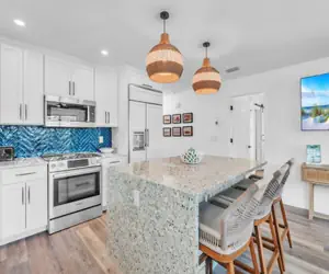 Welcome to The Bea's Knees! An inviting ground-level vacation home just three blocks from the beach! With three bedrooms and three bathrooms, this rental sleeps up to six guests.