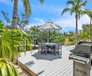 Bring your boat with you! There is a gas grill and multiple outdoor dining spots to enjoy a bite to eat in a beautiful, tropical landscape.