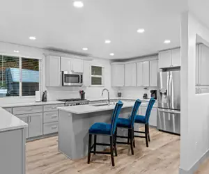★☆ KITCHEN & DINING ☆★The kitchen is wide open to the rest of the living space, creating the ideal spot to cook a full course meal for the entire gathering, while still entertaining in the living space. With new modern appliances and tons of seating, both at the dining table & additional bar seats, there is plenty of room for the entire gathering to enjoy.