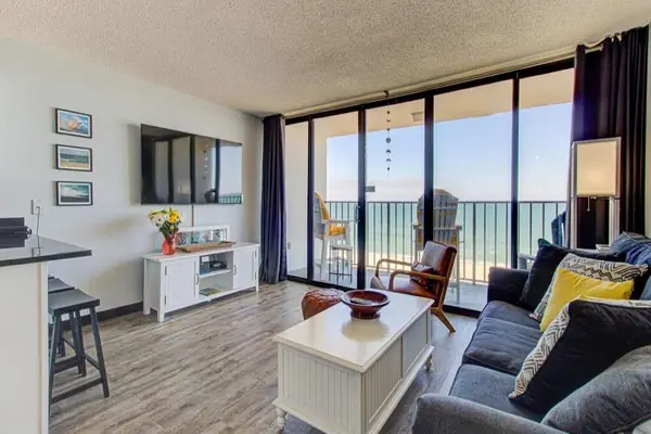 Step into your seaside retreat on the 5th floor—the perfect setting for up to six guests looking for comfort, convenience, and beachside access. The master bedroom features a plush king‑size bed, offering a serene place to unwind after a day of sun and surf. Just down the hallway you’ll find a built‑in twin‑bed alcove, ideal for a child or extra guest, and the living room includes a comfortable sleeper sofa, giving your group flexible sleeping options.