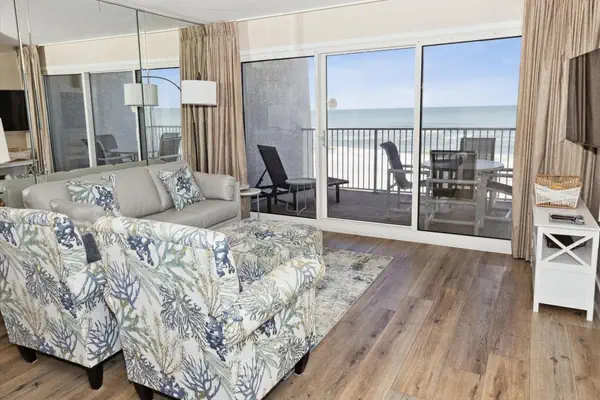 Kick back and relax in this fabulous 1-bedroom, 1-bath, Gulf Front condo in Miramar Beach! This condo has luxury vinyl flooring, upgraded kitchen cabinets with granite countertops, and a counter-height bar. A new king mattress in the master bedroom and a new leather sofa sleeper in the living room, this lovely condo sleeps 4 and has a washer/dryer for your convenience. Wander down the beach to the Surf Hut for a bite, take a dip in the beachfront pool, or catch some rays on the sugar-white beaches. To work off those calories, there are tennis courts and a fitness center for your use. Load up on activities or do nothing at all, you'll enjoy your time at Beach House 305B!