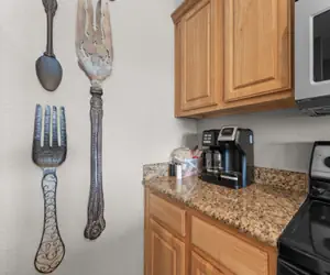 The kitchen features ample counter space, and all the necessary cookware and utensils to whip up delicious meals for your family and friends.