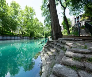 This fabulous ground floor 3/2 condo at Camp Warnecke Estates is on the banks of the beautiful Comal River; across the street from Schlitterbahn; an easy walk to the downtown shops, bars and restaurants. The perfect location for your family vacation. This lovely 3 bedroom, 2 bath condo overlooks the crystal clear Comal River. Enjoy Schlitterbahn located just across the street, float the Comal River and get out just steps away from your own backdoor or walk up to the Garden St. Bridge for a soothing 30 minutes of “Cruising down the River” – perfect for the little ones. Rockin' R is a local tube outfitter which can pick up in the parking lot next to Camp Warnecke between Memorial Day and Labor Day. For any reservation outside of that date range, the Rockin' R shop is located only .5 miles away.