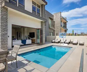 The highlight of "Bunker on the 8th" is undoubtedly the outdoor oasis, featuring a sparkling pool complete with a basketball hoop for some friendly competition. Lounge on the sun-drenched deck, sip cocktails by the poolside bar, or gather around the fire table on the rooftop patio for cozy evenings under the stars. Stay in and enjoy family quality time playing the Xbox and the provided family games.