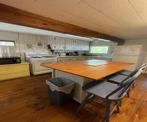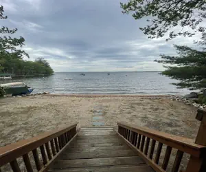 Spacious, chalet style shorefront cottage with eat in kitchen, living room overlooking the shorefront and lake.