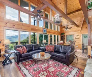 Smoky Mountain High is a Luxury 8-Bedroom Mountain Lodge with Spectacular Mountain Views, Game Room, Sauna & Hot Tub