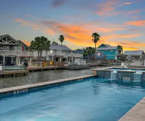 When you stay in this fabulous 4BR/4BA home you’ll find unrivaled luxury located near exciting coastal activities. The private dock makes it easy to launch a kayak or cast a line on the canal, outfitted with green lights. Paradise awaits in your backyard, outfitted with a pool, hot tub, an outdoor kitchen, and an alfresco lounge. Drive just three miles for blissful days at Rockport Beach. Inside, the game room with a shuffleboard table and dartboard provides group amusement. Other highlights include upscale furnishings, a gourmet kitchen, and lovely water views on each of the two floors.