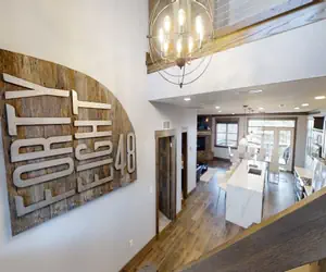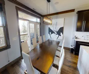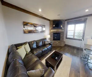 Black Bear Crossing 23 is a 8 bedroom/9 bath right on Snowshoe Mountain Resort's Powderidge Lift and ski slope. This slope side property allows you to strap into your snowboards and skis and have direct access to the slopes from the basement porch. Every bedroom has its own full bathroom. Guests staying in this home will enjoy 3660 square feet of living space spread out through 4 levels. Inside, you'll find stainless steel appliances, flat screen TVs, Fiber optic digital TV with over 70 HD channels, granite counter tops, a private hot tub overlooking the eastern mountains, and three decks. The lowest level is a 760 sqf gameroom with a Shuffle board, Foosball table, Wet bar, Ski prep area with commercial boot dryer, and a large flat screen TVs perfect for entertaining. It's the perfect home for a group vacation in the beautiful mountains of West Virginia.
