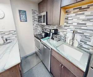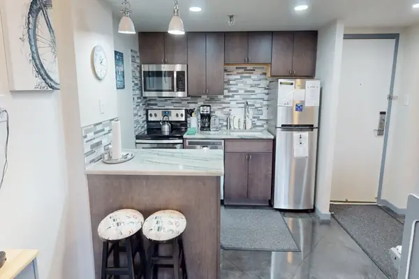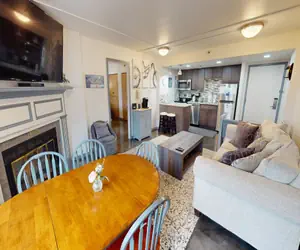 Newly Finished Brigham Renovation! This two bedroom unit has been completely renovated to Brigham standards with polished concrete floors, new solid maple kitchen cabinets, granite and stainless steel appliances. New granite, sinks, and toilet in bathrooms. New furnishings throughout including 2 55'' Smart TVs in the bedrooms and a 65'' in the living room and custom Snowshoe inspired artwork. Don't miss out on this opportunity to stay in a one of a kind 2-bedroom Brigham rental!
