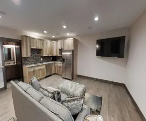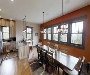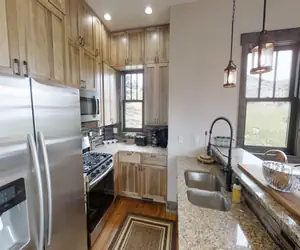 Unforgettable views and well thought out amenities make this home the perfect mountain retreat for your family or large group. Enjoy a full kitchen with high-end appliances, a full bar, while taking in views from any of the porches that adorn the home. Other luxuries include a laundry room, a plethora of flat-screen TVs, and space for children to play. Upper level first bedroom to the let has a king bed. First bedroom on the right has a king bed. Den on the right has a sleeper sofa. Master bedroom on this floor has a king bed with bathroom in the room. Main level has a master bedroom with a king bed and bathroom in the room. The lower level has two bedrooms with queen beds.