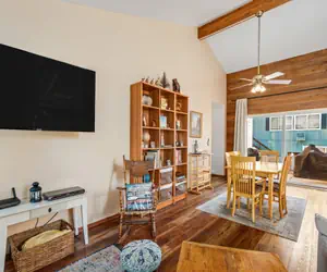 Kathy's Korner is a pet-friendly mountain retreat located within walking distance of Lake Lodge Beach in Pine Mountain Lake. This three-bedroom, two-bathroom home offers 1,700 square feet of space and is perfect for families and groups looking for a relaxing getaway.
