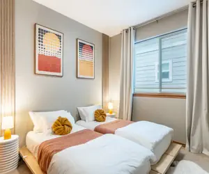 Welcome to our home furnished in a luxurious mid-century modern style, located in a tranquil neighborhood of Bellingham, WA. As you step inside, you'll be greeted by the perfect blend of sophistication and comfort.Located in one of the most convenient locations in Bellingham, our home offers easy access to a variety of nearby attractions. Our beautifully-decorated home features unique design elements, creating an ambiance that is both luxurious and inviting. The kitchen, dining room, and living room all flow together to create an open and airy space. There are three bedrooms and two bathrooms including a dreamy master suite with an attached bathroom and walk-in closet. The space boasts high-quality bedding and towels, a modern leather sectional with built-in power reclining seats, and blackout curtains in every bedroom, making it the perfect spot to relax and unwind. Whether you are working from home, streaming a show, or playing a game, excellent wifi connectivity is available.Nearby, you'll find some of the area's best restaurants, and convenient shopping including Bellis Fair Mall, Costco, Target, and Fred Meyer. For those who have electric vehicles, Electrify America rapid chargers are also just five minutes away. The location is walking distance from Whatcom Community College and a short drive to downtown Bellingham where you'll have access to everything this beautiful city has to offer. Whether you're looking for outdoor adventures, cultural experiences, or simply a relaxing getaway, our luxurious home is the perfect starting point for your Bellingham journey.★☆ KEY FEATURES ☆★☀ 3 Bedroom with 2 Bath☀ Fully equipped kitchen, stocked with the essentials and more☀ High-end and luxurious furnishing☀ Unique mid-century modern decor☀ Open living area perfect for bonding with families & friends!☀ Mini arcade game machine☀ Wall-mounted games - scrabble, connect 4☀ Outdoor dining table perfect for dinner parties☀ Washer + Dryer☀ High-speed internet★☆ BEDROOM ARRANGEMENT☆★BR1: 1 King BedBR2: 1 King BedBR3: 2 Twin XL BedsAll bedrooms have smart Roku TV's★☆ LIVING ROOM ☆★Cozy and spacious living room with a comfortable couch to curl up for a movie with your loved ones and plenty of board games to keep you entertained. The living room offers plenty of natural light and flows seamlessly together, creating a warm and inviting space perfect for bonding with friends and family. Books/Magazines/Reading Material and playing cards are also available for the family to enjoy. Enjoy a movie or watch a game on the smart TV with an attached soundbar. An additional Sonos speaker is available to connect via bluetooth or wifi to enjoy your tunes.★☆ KITCHEN & DINING ☆★The kitchen is fully equipped with a brand new gas range and waffle-maker, and the outdoor patio with a dining table is perfect for enjoying a meal or soaking up the natural light.★☆ GAME / READING ROOM ☆★The unique reading/game room offers a cozy spot to relax and unwind, complete with wall-mounted scrabble, connect-four, and a mini arcade machine.Across the home, the furniture, carefully selected from Kasala, West Elm, and Floyd, provides a sense of luxury and comfort that will make you feel right at home.★☆ PARKING ☆★☀ 4 parking spaces available - 2 in garage and 2 outside the garage in the driveway☀ Free street parking★☆ OUTDOOR SPACE ☆★The quaint and picture-perfect outdoor space is all that you could ask for. The dining table is perfect for hosting dinners for everyone. An outdoor hanging chair provides a relaxing place to read or have a drink. This spot is to die for!★☆ NEARBY ATTRACTIONS & LANDMARKS ☆★☀ Less than 5 mins to restaurants, grocery (Costco, target and Fred Meyer) and to Bellis Fair mall☀ 5 mins to the Airport☀ Less than 9 min to downtown Bellingham☀ Western Washington University - 11 min drive☀ Storia Cucina - 13 min drive☀ Redlight Kitchen and Bar - 12 min drive☀ Wanida Thai Cuisine - 9 min drive☀ Blue Fin Sushi - 11 min drive☀ Carnal - 12 min drive☀ Whatcom Museum - 10 min drive☀ Big Rock Garden Park - 14 min drive☀ Whatcom Falls Park - 13 min drive☀ Whatcom community college - walking distance★☆ SECURITY CAMERAS ☆★For safety and security, exterior cameras are installed in the front yard and backyard, along with a video doorbell. There is also a camera inside the garage.★☆ HOUSE RULES ☆★☀ No smoking☀ No pets allowed☀ No events, parties, or large gatherings☀ No shoes in the house☀ No loud music - the house is equipped with a noise level monitor☀ Quiet hours are from 9pm to 8am☀ Must be at least 25 years old to book☀ Please report any damages that occur during stay☀ Guests may request an early check-in (up to 3 hours before 4pm) or a late check-out (up to 2 hours after 10am), so long as there is not a reservation booked at our property for the day of your request. Please message us a day in advance to confirm availability and receive the applicable fee quote.☀Extra Guests: If more guests than permitted are found at the property, we reserve the right to deny entry based on policies. Extra guests will be treated as trespassers. An additional fee of $50/night per extra guest may apply, or we might request that you vacate the property.☀If uncertain about guest numbers or daytime visitors, please reach out. We aim to prevent any misunderstandings.