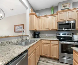 Nestled within a picturesque lakeside community, our condo welcomes you with modern amenities and breathtaking views of the tranquil waters. Step inside to discover a bright and airy living space, tastefully furnished with cozy seating, a flat-screen TV, and large windows that frame stunning views of the lake and surrounding nature.