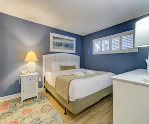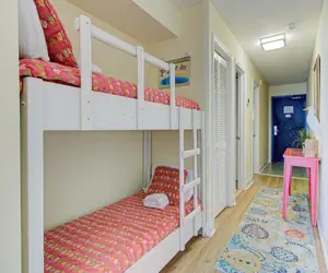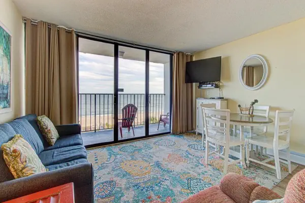 Welcome to your beach‑front escape on the 4th floor of a prime ocean‑front building where waves are your backdrop and comfort is effortless. This inviting 1‑bedroom, 1‑bathroom condo comfortably sleeps up to six guests. The master bedroom is furnished with a luxurious king‑size bed, offering a restful retreat after a sun‑filled day in the sand. Just down the hallway, you’ll find a built‑in bunk‑bed alcove—perfect for children or extra guests who want their own cozy nook. The living room features a comfortable sleeper sofa, giving the group the flexibility to spread out and relax.