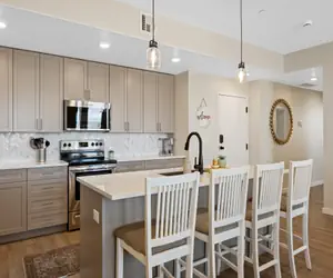 When it's time to recharge, retreat to one of the three inviting bedrooms, each thoughtfully appointed for a restful night's sleep. Two king bedrooms offer luxurious comfort and ample space to spread out, while the third bedroom features a queen bed and a twin-over-twin-over-twin bunk, ideal for families or larger groups.