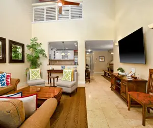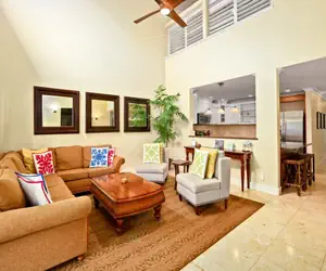 This 5 bedroom condo is a roomy and centrally air conditioned home with plenty of space for your whole crew. This sub development is called Regency Villas, and is located in Poipu Kai. This home offers modern appliances, central A/C, washer and dryer, beach toys, and so much more!