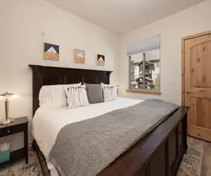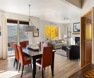 After your daily adventures, unwind in the inviting living room with a gas fireplace and flat-screen TV. Whether you're engrossed in a book or catching up on shows, it's the perfect spot to chill. Step out onto your private balcony and enjoy the outdoor dining table while breathing in the fresh mountain air and scenic views with morning coffee or evening cocktails.